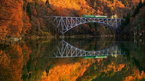 Railway scenery itself forms part of the region's appeal, particularly along the Tadami Line in Oku-Aizu, where local trains cross river valleys framed by forested slopes.